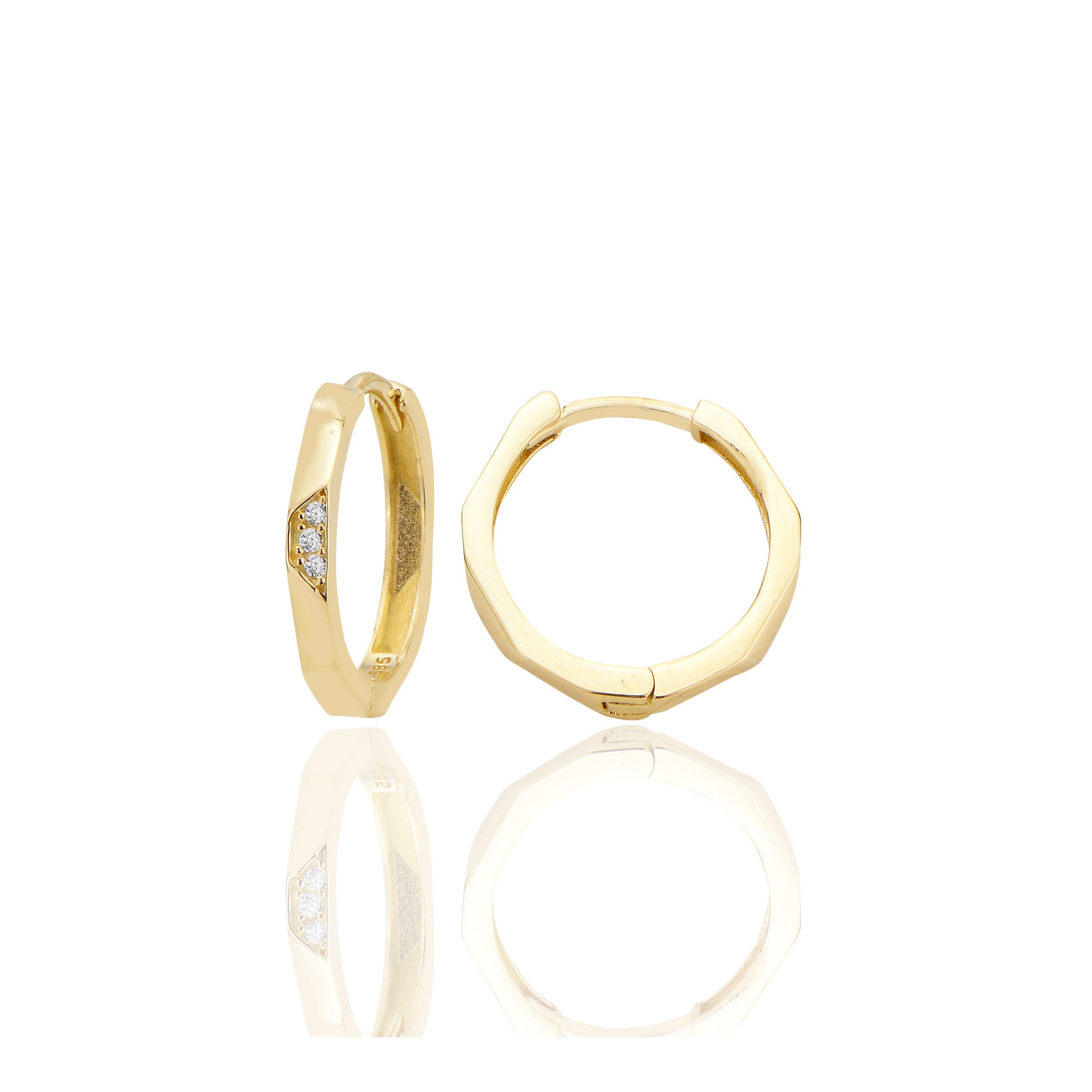 14 ayar Altın Huggie Beşgen Küpe Zirkon Taşlı T113 - 14 Ayar Altın Halka Küpe – Zirkon Taşlı Zarif Şıklık